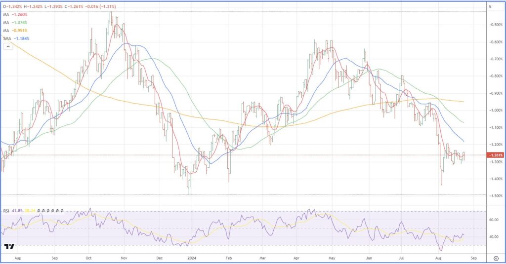 First we have a chart of market rates vs the FF rates and we see they have declined since April.