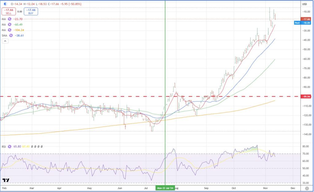 The Big Guys seem to be running as the Trump story unfolds. I always watch three stocks to see what the Big Money is doing, i.e. the base where inequality sits. Three stocks are a good representation, KKR, BLK, and APO. I watch them basis the S&P 500. Today at this moment they are down 1.6 to 2.1 % while the S&P is only down 0.4 %.