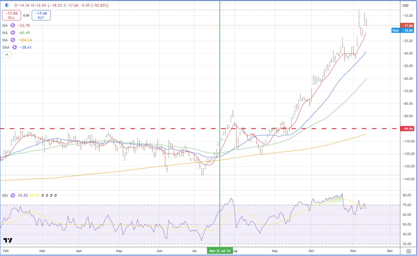 The Big Guys seem to be running as the Trump story unfolds. I always watch three stocks to see what the Big Money is doing, i.e. the base where inequality sits. Three stocks are a good representation, KKR, BLK, and APO. I watch them basis the S&P 500. Today at this moment they are down 1.6 to 2.1 % while the S&P is only down 0.4 %.
