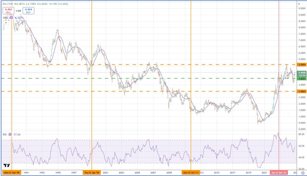 Here is our take on the Neutral rate that is emerging, it is much different from the current market view. This chart goes back to March 1989, it is the average rate (30Y + 10Y + 5Y + 2Y).
