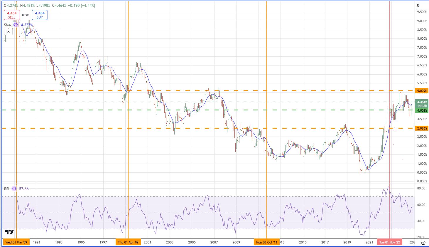 What we see is that the Neutral band looks to be 3.0 % to 5.0 % with the Neutral rate coming in at 4.0 %. Basically, we moved into the Neutral band in June 2022 and have been flopping around above the neutral level since September 2022.
