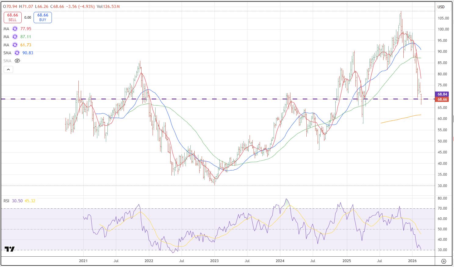 And the second chart the once hot, not so hot index of PLTR, SNOW, CRWD, CRM group. They got cleaned out also. Down to a good level, will try to have a big bounce now.